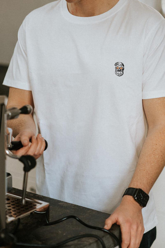 Kaffee Hipster | Besticktes Organic Bio Baumwoll Männer T-Shirt