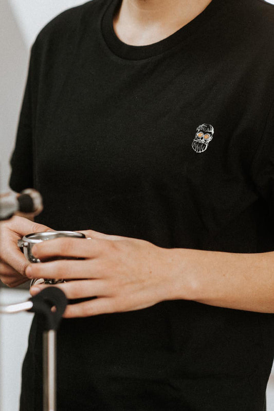 Hochwertig gestickte Motive auf lässigen T-Shirts von WZB Coffee Fashion. Fair und nachhaltig produziert am Chiemsee. Kostenloser Versand.